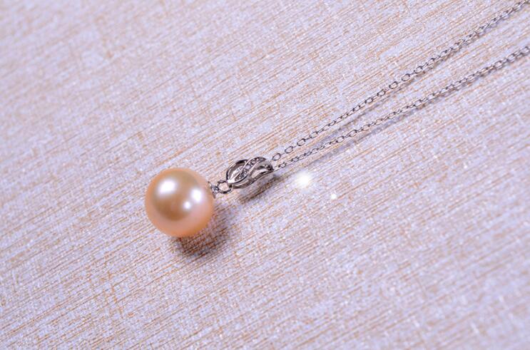 Pearl pendant Pearl type: Cultured freshwater pearl Pearl shape: Round Pearl size: 10mm Pearl color: Pink Necklace material: S925 Gemstone: Cubic zirconium Sample or trial order are welcomed.