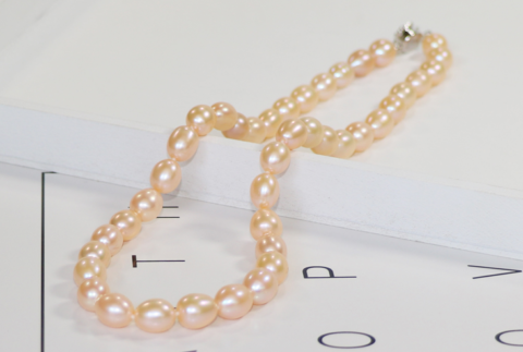 Pearl necklace pink oval shape